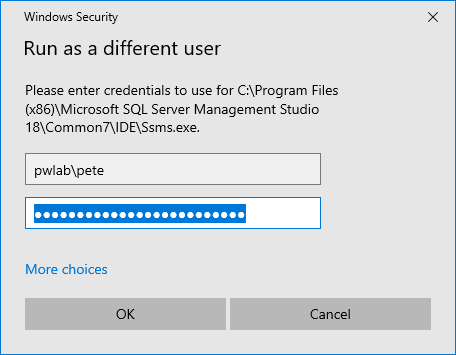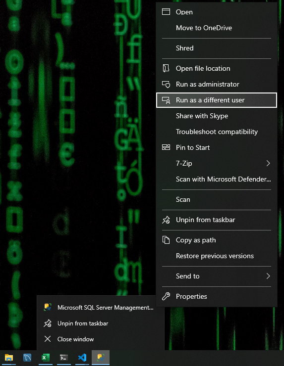 Open SSMS as a Different Domain User (GUI Method)