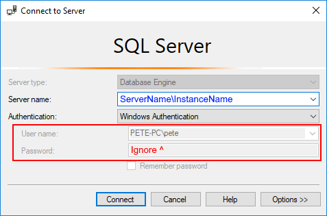 When working in corporate SQL Server environments, you will often need to connect using a different Active Directory domain account.